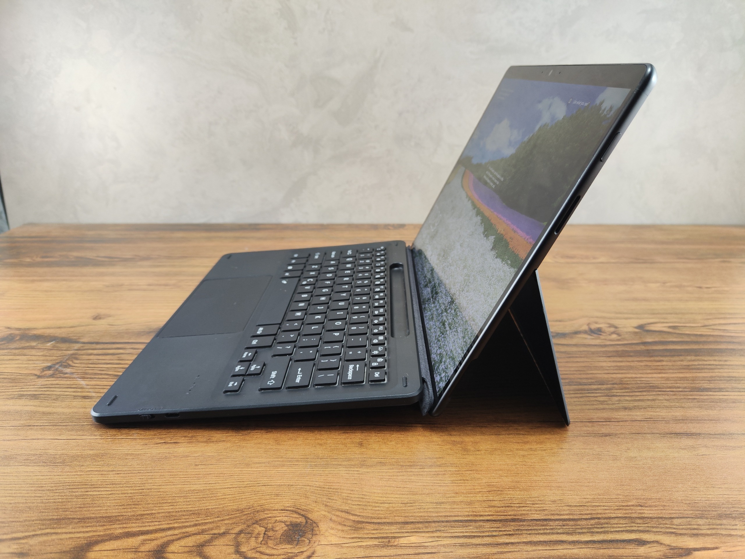 ((گوشه حاشیه صفحه نمایش یک ترک کوچیک دارد که ادامه دار نیست و هیچ تاثیر و یا مشکلی برای تاچ و یا صفحه نمایش ندارد که عکس آن گذاشته شده)) سلامت هارد 54% هست.-هارد این مدل دستگاه ها به راحتی قابل تعویض هست- به همراه کیبورد بلوتوثی(طبق تصویر) با بک لایت. قیمت با توجه به موارد بالا بسیار پایین تر از قیمت واقعی زده شده هست.